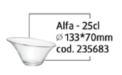 Chén kem thủy tinh Aria alfa 25cl Ly thủy tinh, chén kem thủy tinh Aria alfa là một tuyệt tác của ALMA - một chuyên gia ẩm thực nổi tiếng của Ý. Sản phẩm được lấy cảm hứng từ thiên nhiên phác họa hình dáng mềm mại và uốn lượn của chiếc phễu. Không chỉ tạo nên kiểu dáng độc đáo, mới lạ mà còn làm tăng độ hấp dẫn của món ăn bởi sự trong suốt và lung linh của thủy tinh.