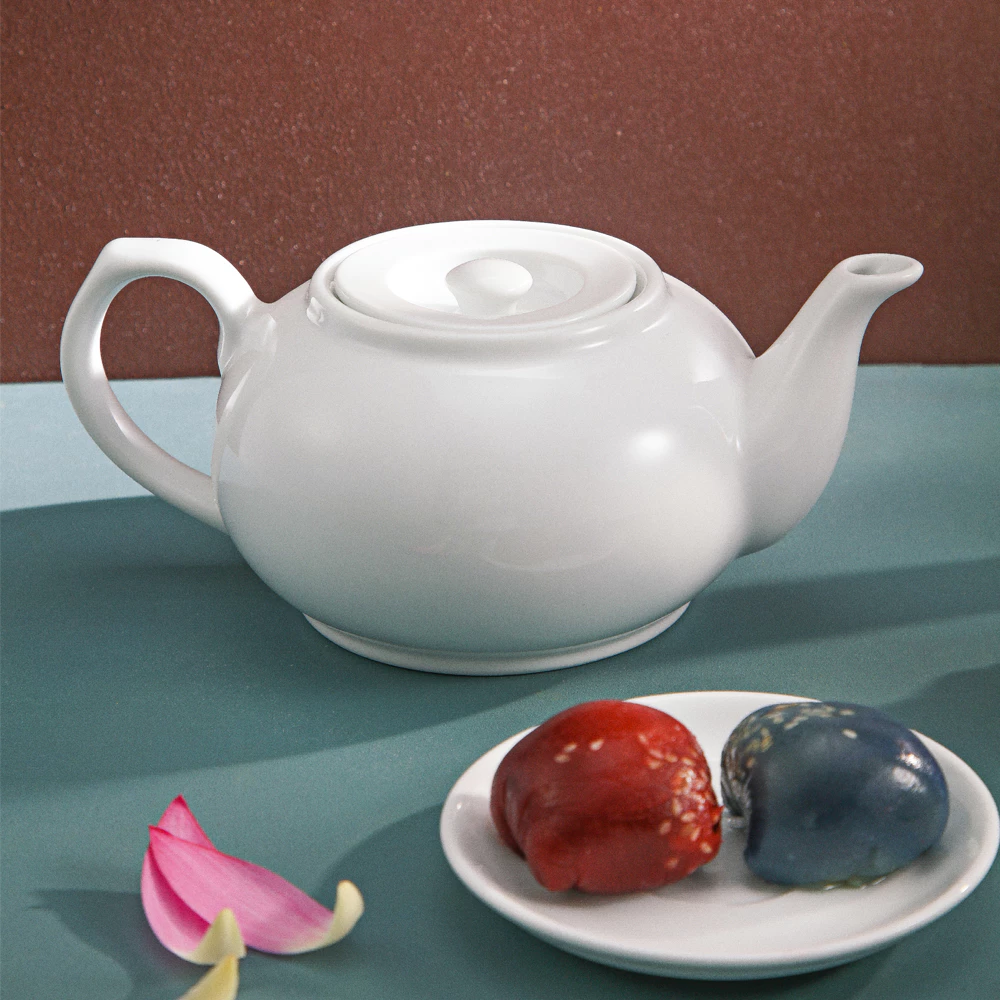 Ấm không có họa tiết nên phù hợp kết hợp với các loại chén trắng trơn.