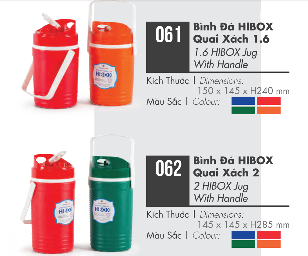 | HT 062 | 2,000ml - Dài: 14.5cm - Rộng: 14.5cm - Cao: 28.5cm |