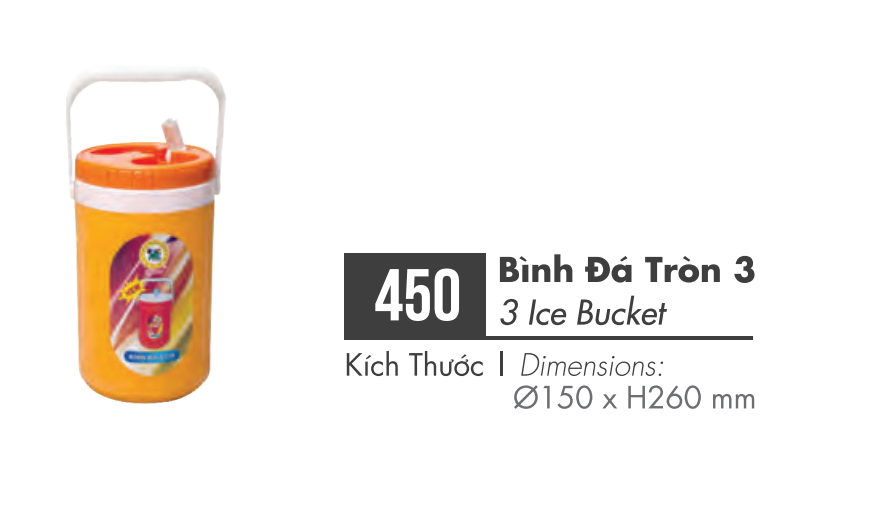 • Bình đá tròn với thiết kế tiện lợi, dung tích đa dạng, rất phù hợp cho những chuyến du lịch dã ngoại, sử dụng trong gia đình, các hàng quán,..