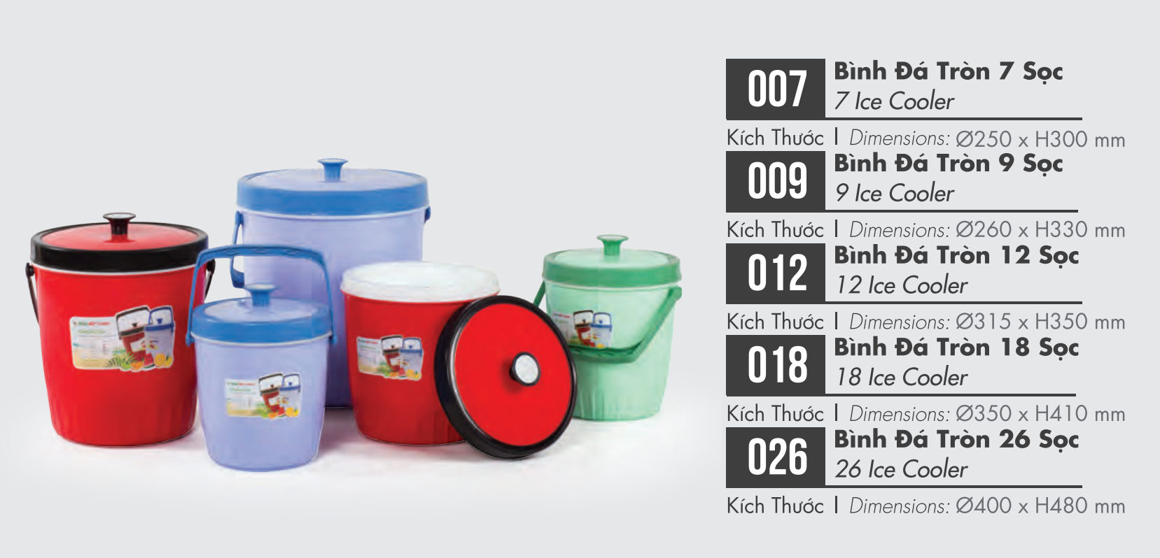 • Đa đạng dung tích: 7L, 9L, 12L,…