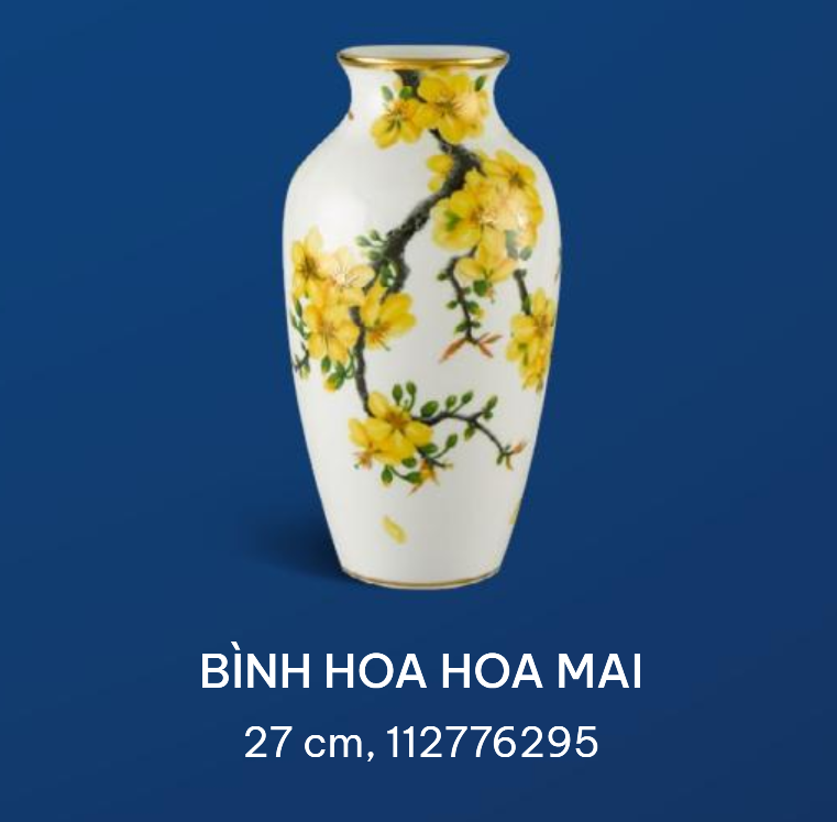 Tựa như bức tranh mùa xuân với nét vẽ bay bổng trên nền sứ trắng sáng, bình hoa mai không chỉ kết tinh sự lãng mạn, nên thơ của thiên nhiên, mà chất chứa cả ân tình thiết tha của con người với vẻ đẹp xứ sở. Sức sống mạnh mẽ như gốc rễ vững chắc, hy vọng khát khao như nụ chồi lộc xanh bé bỏng kiên cường, và vươn lên đón ánh bình minh như cánh hoa kiêu hãnh giữa đất trời. Để rồi sắc vàng bừng nở rực rỡ như đón sự hưng vượng, sung túc, trù phú, phát tài, phát lộc, tươi sáng trong năm mới.