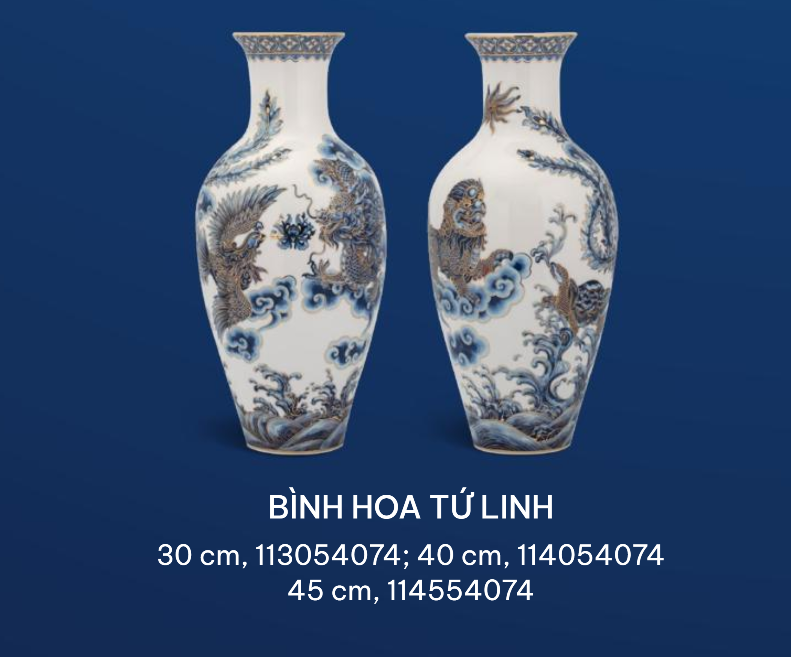 Bình Tứ Linh với họa tiết là hình dáng của các linh vật có ý nghĩa tốt lành, may mắn, được đội ngũ nghệ nhân của Minh Long I phác họa tỉ mỉ, khéo léo.
