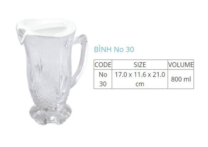 | ACR NO30 | 800ml - Dài: 17cm - Rộng: 11.6cm - Cao: 21cm |