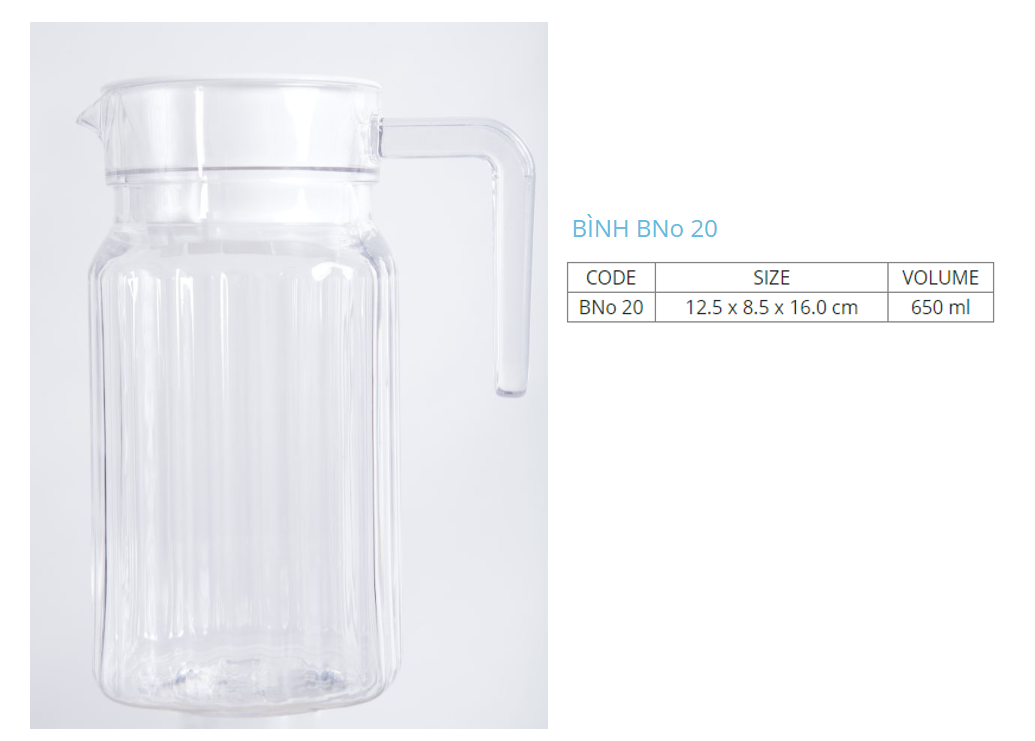 | ACR BN20 | 650ml - Dài: 12.5cm - Rộng: 8.5cm - Cao: 16cm |
