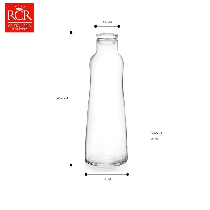 Bình Nước Detox Thủy Tinh Pha Lê Ý RCR Eco Water Bottle 1.09l thích hợp để chứa đựng các loại nước như nước lọc, nước Detox, nước ép trái cây, soda và nhiều loại nước giải khát mùa hè khác.