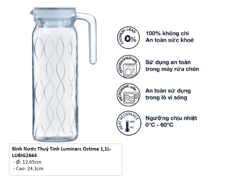 Bên cạnh đó, các sản phẩm ly thuỷ tinh và bình thuỷ tinh Luminarc an toàn tuyệt đối vì không chứa chì và các tạp chất có hại cho sức khoẻ như các chất liệu khác.