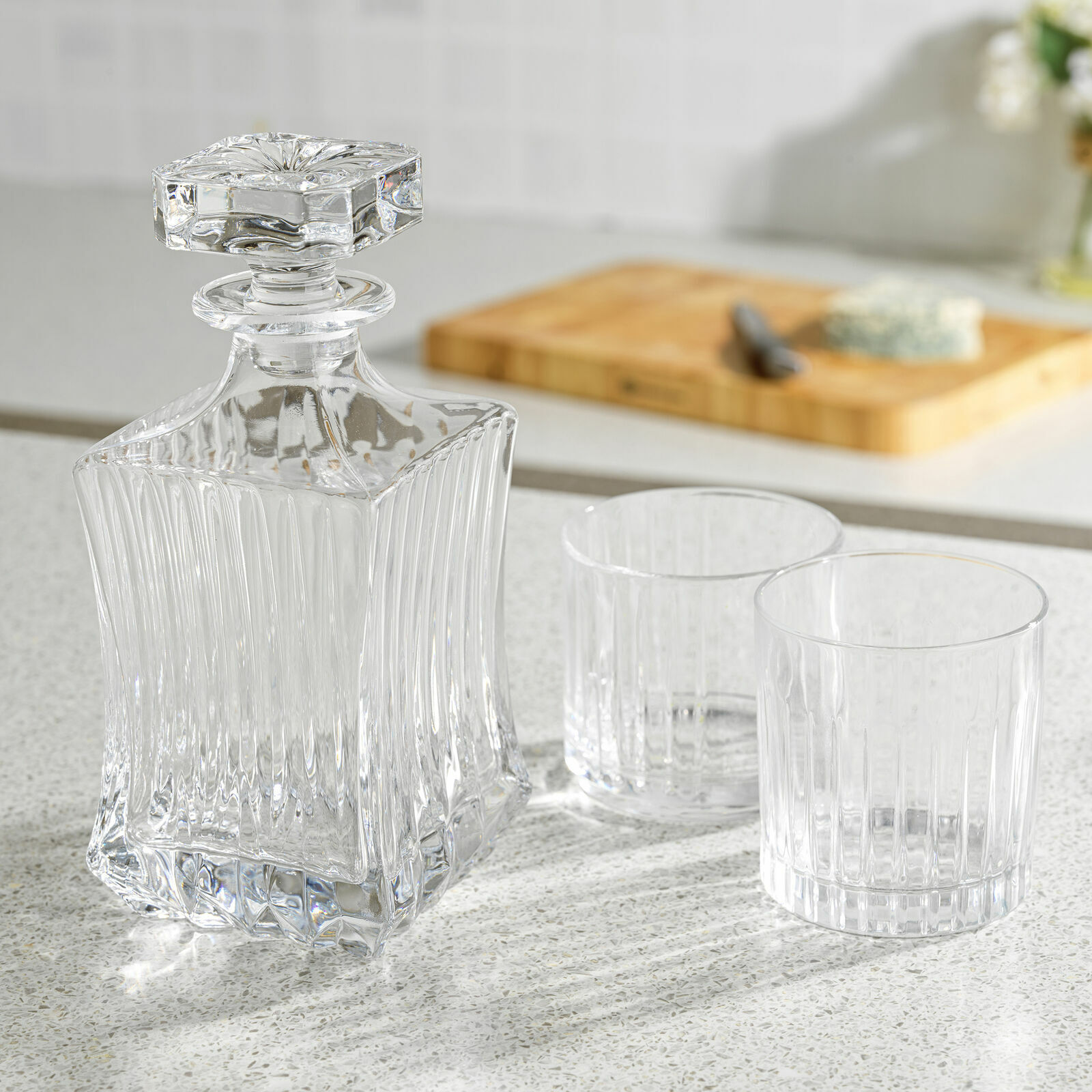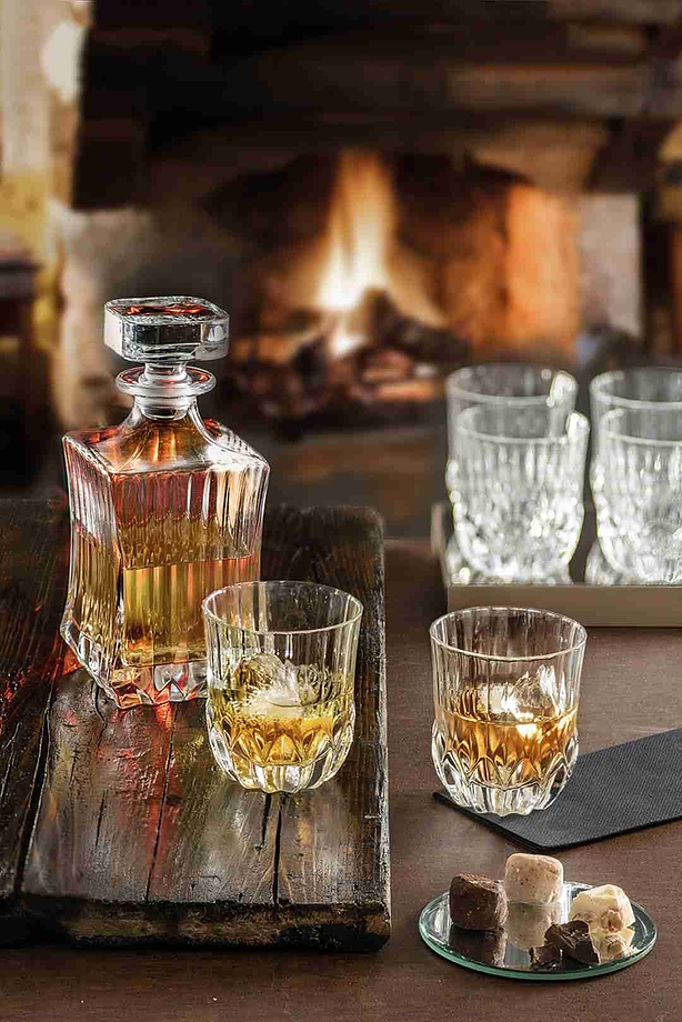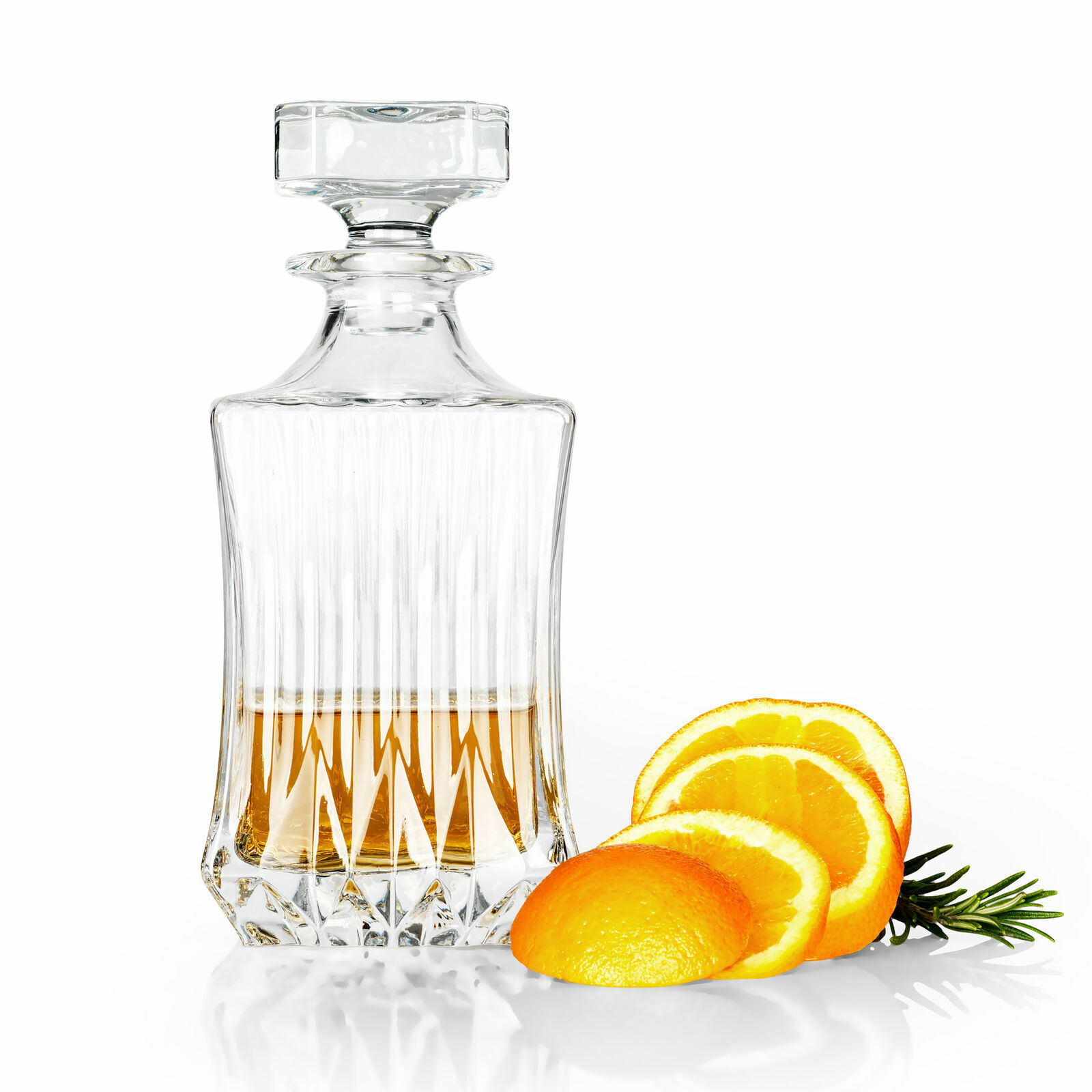 Chất liệu thủy tinh pha lê cao cấp tạo nên độ trong suốt lấp lánh, kết hợp với dung tích 750ml, tạo nên không gian sang trọng cho mọi bữa tiệc và giúp rượu whisky hòa mình vào không gian tinh tế.