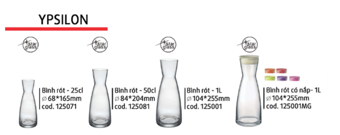 Bình thủy tinh có thể dùng đựng một số loại vang đỏ, sữa, nước trái cây,...bày trực tiếp trên bàn ăn. Bình rót rượu thủy tinh Ypsilon Bormioli Rocco với những ưu điểm vượt trội Bình Ypsilon với thiết kế thân cao, cổ bình thắt nhỏ tinh tế với độ uốn cong mềm mại sang trọng.