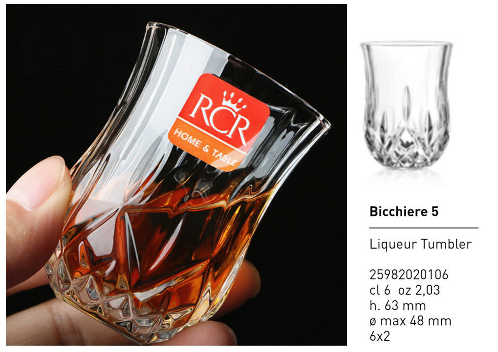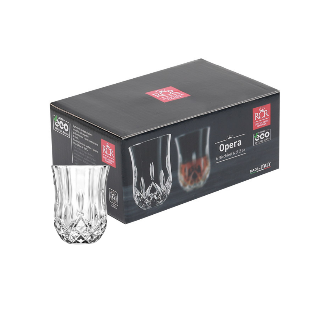 Bộ 6 ly Shot uống rượu thủy tinh pha lê Italia RCR Opera Liqueur Tumblers 60ml là biểu tượng của sự sang trọng và đẳng cấp.