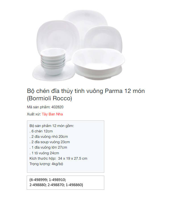 Thương hiệu Bormioli của Ý, không chỉ đáp ứng hầu hết các nhu cầu về chai lọ, ly cốc, chén, đĩa... của ngành dược phẩm, mỹ phẩm, thực phẩm và ăn uống mà còn đã trở thành tập đoàn hàng đầu Châu Âu chuyên cung cấp đầy đủ và đa dạng các sản phẩm bằng thủy tinh phục vụ trên bàn ăn. Sang trọng, phong cách và tinh tế tạo nên bộ ba giá trị mà dòng sản phẩm Bormioli mang đến cho mọi bữa tiệc của bạn.