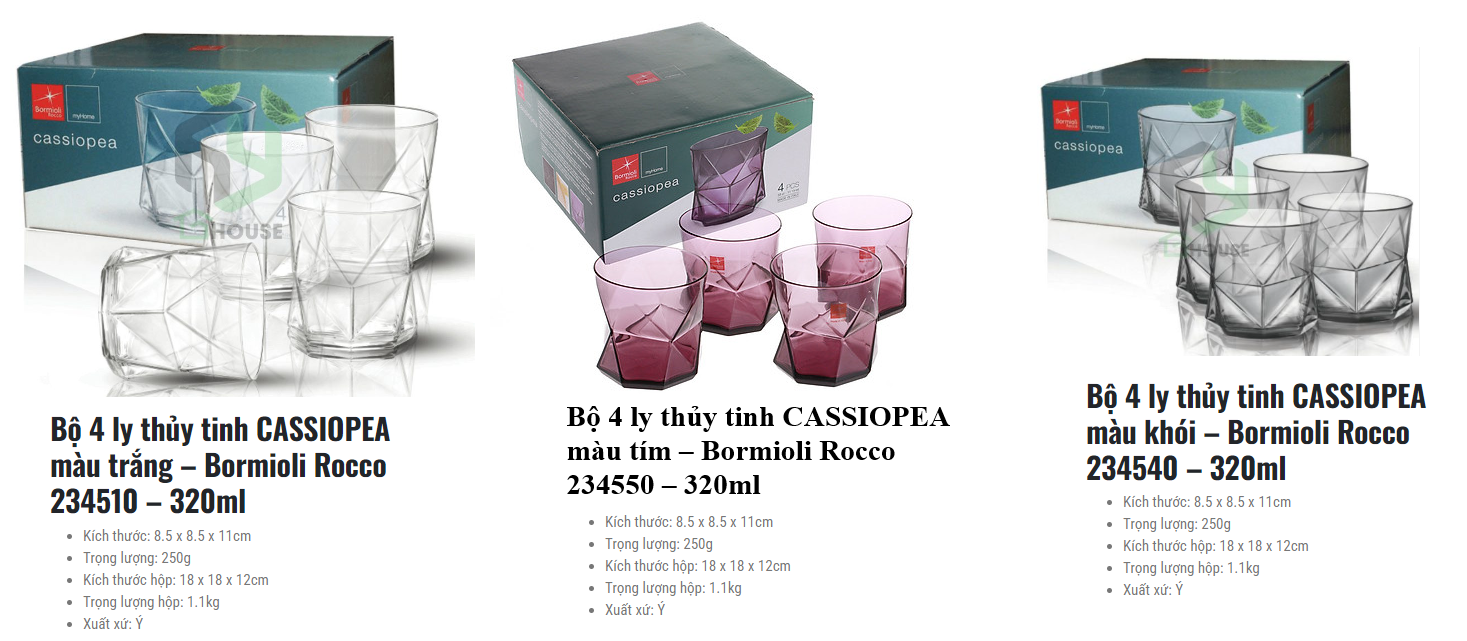 Ly thủy tinh Cassiopea Ly thủy tinh Cassiopea thiết kế chuyên dụng dùng uống một số loại rượu mạnh như Whisky, Armagnac, Cognac, chivas, Brandy. Thân ly với các vân thủy tinh nổi sang trọng làm nổi bật màu rượu trong ly khi rót.