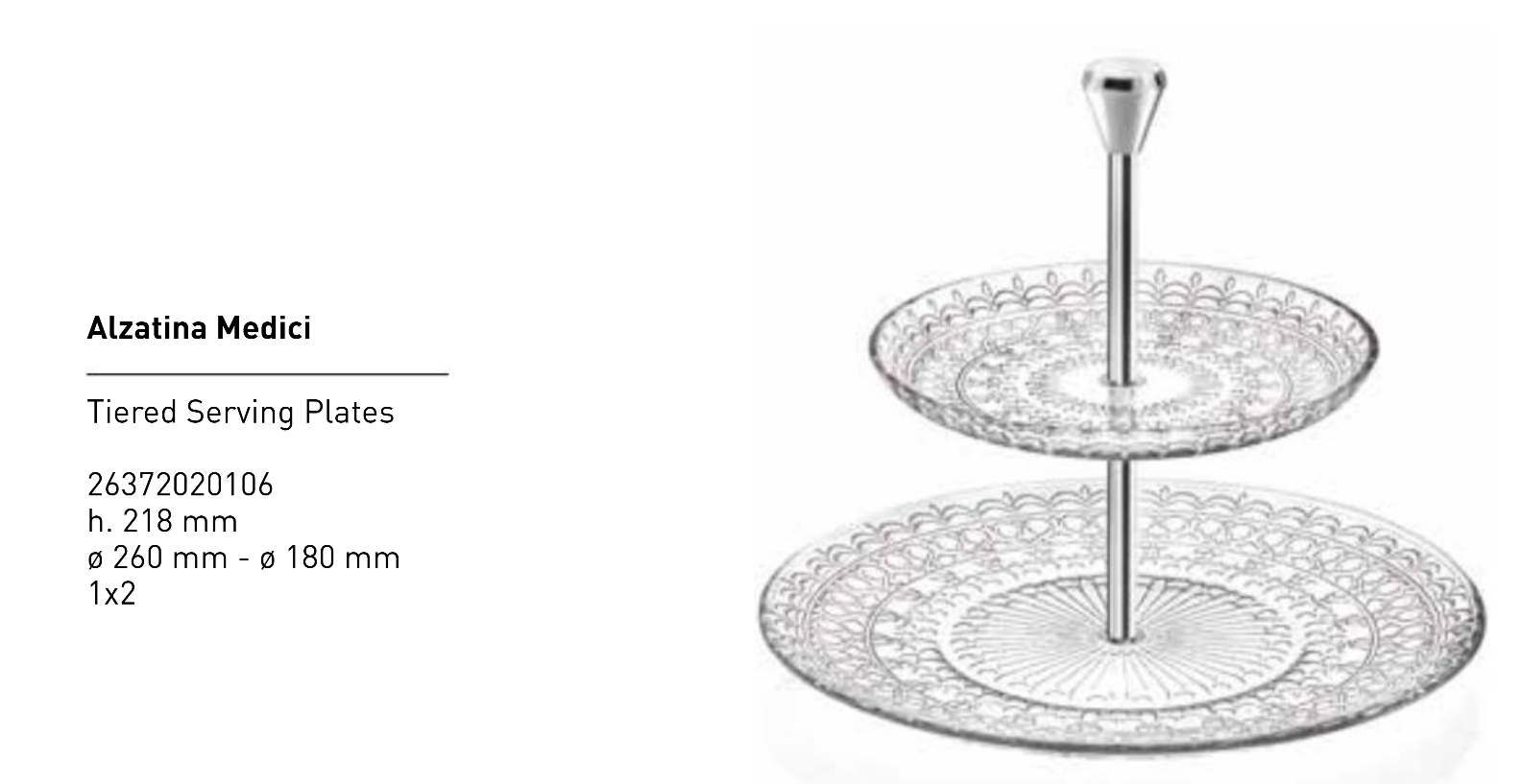 Bộ đĩa 02 tầng RCR Alzatina Medici của Italy có nguồn gốc xuất xứ từ Italy, sản phẩm đạt tiêu chuẩn chất lượng Châu Âu.