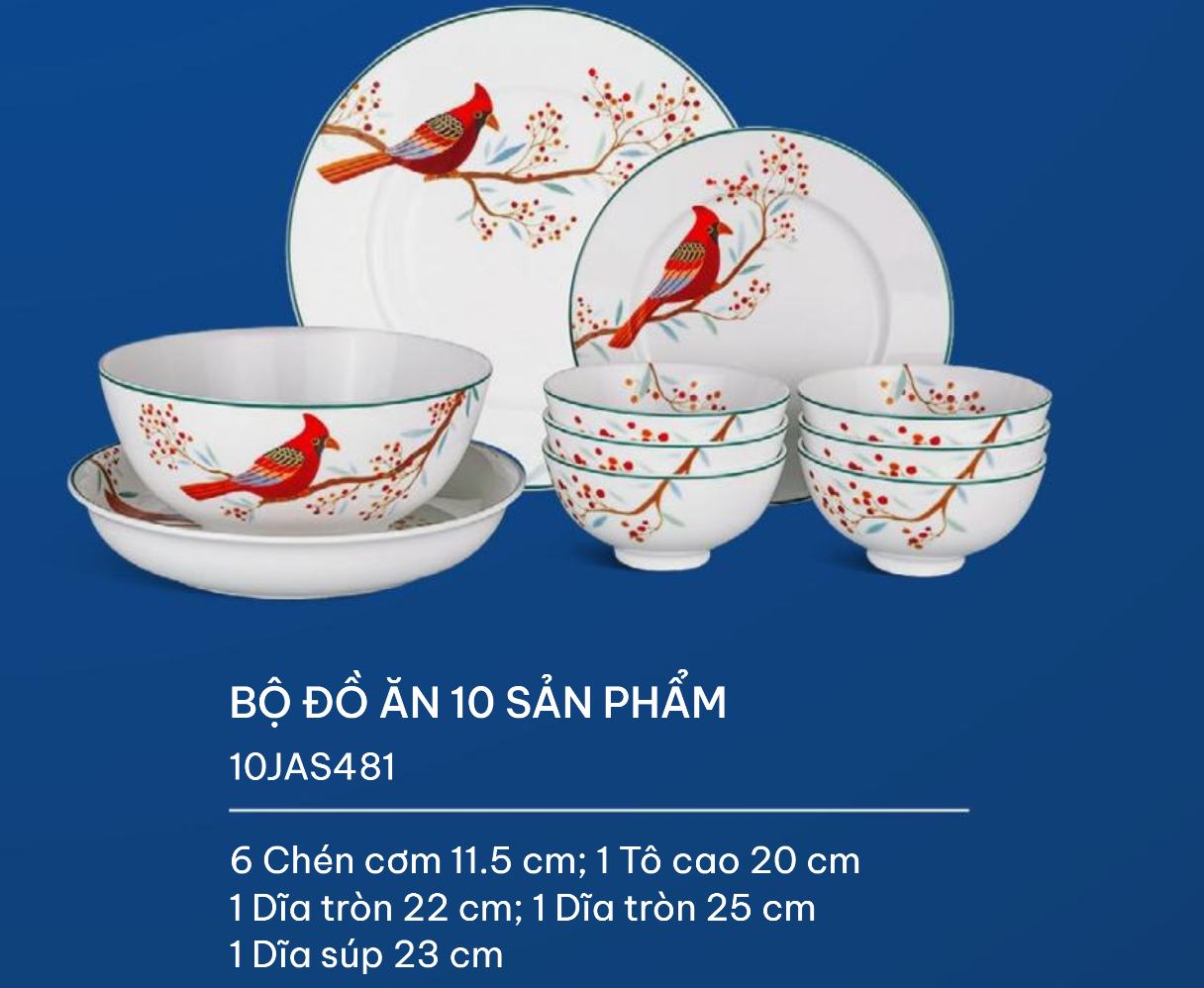 Mô tả sản phẩm Bộ đồ ăn 10 sản phẩm – Jasmine – Quả Đầu
