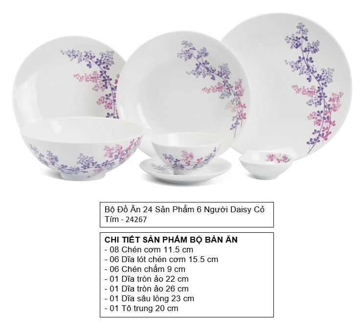 Bộ đồ ăn 24 sản phẩm bao gồm: