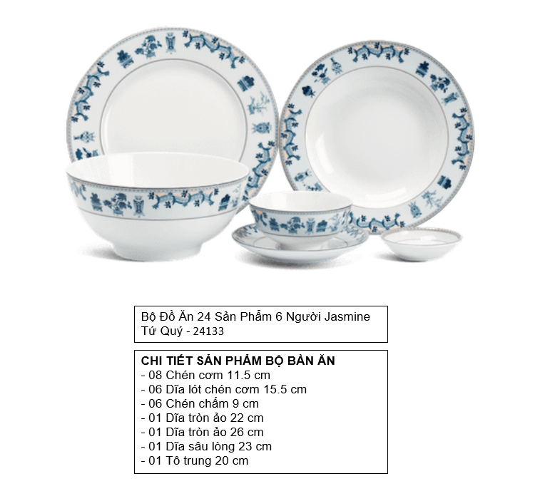 Bộ đồ ăn 24 sản phẩm bao gồm: