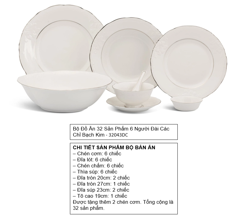 Bộ đồ ăn 32 sản phẩm bao gồm: