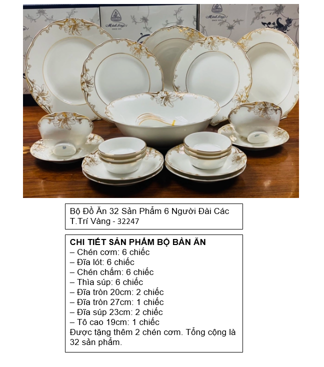 Bộ đồ ăn 32 sản phẩm bao gồm: