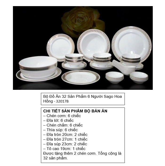 Bộ đồ ăn 32 sản phẩm bao gồm: