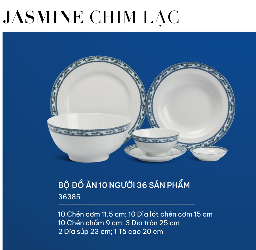 Bộ đồ ăn 10 người 36 sản phẩm - Jasmine - Chim Lạc bao gồm: