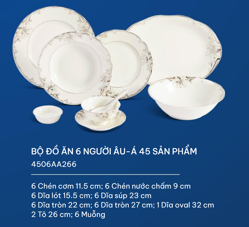 Bộ đồ ăn 45 sản phẩm bao gồm: