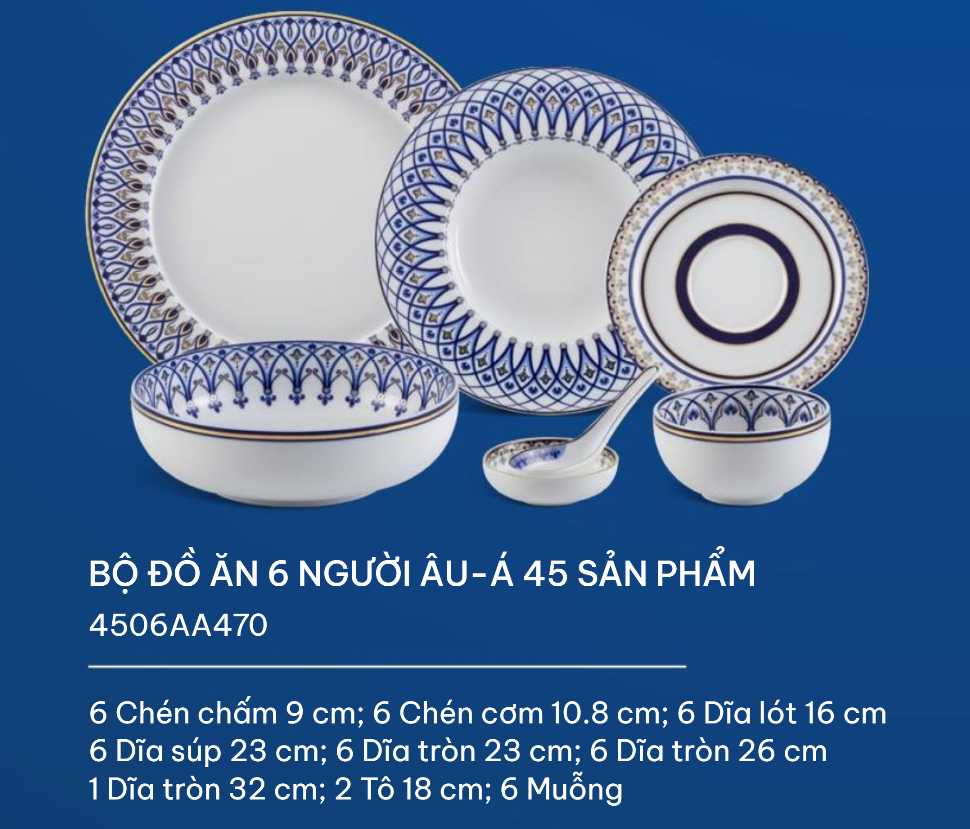 Bộ đồ ăn 45 sản phẩm bao gồm: