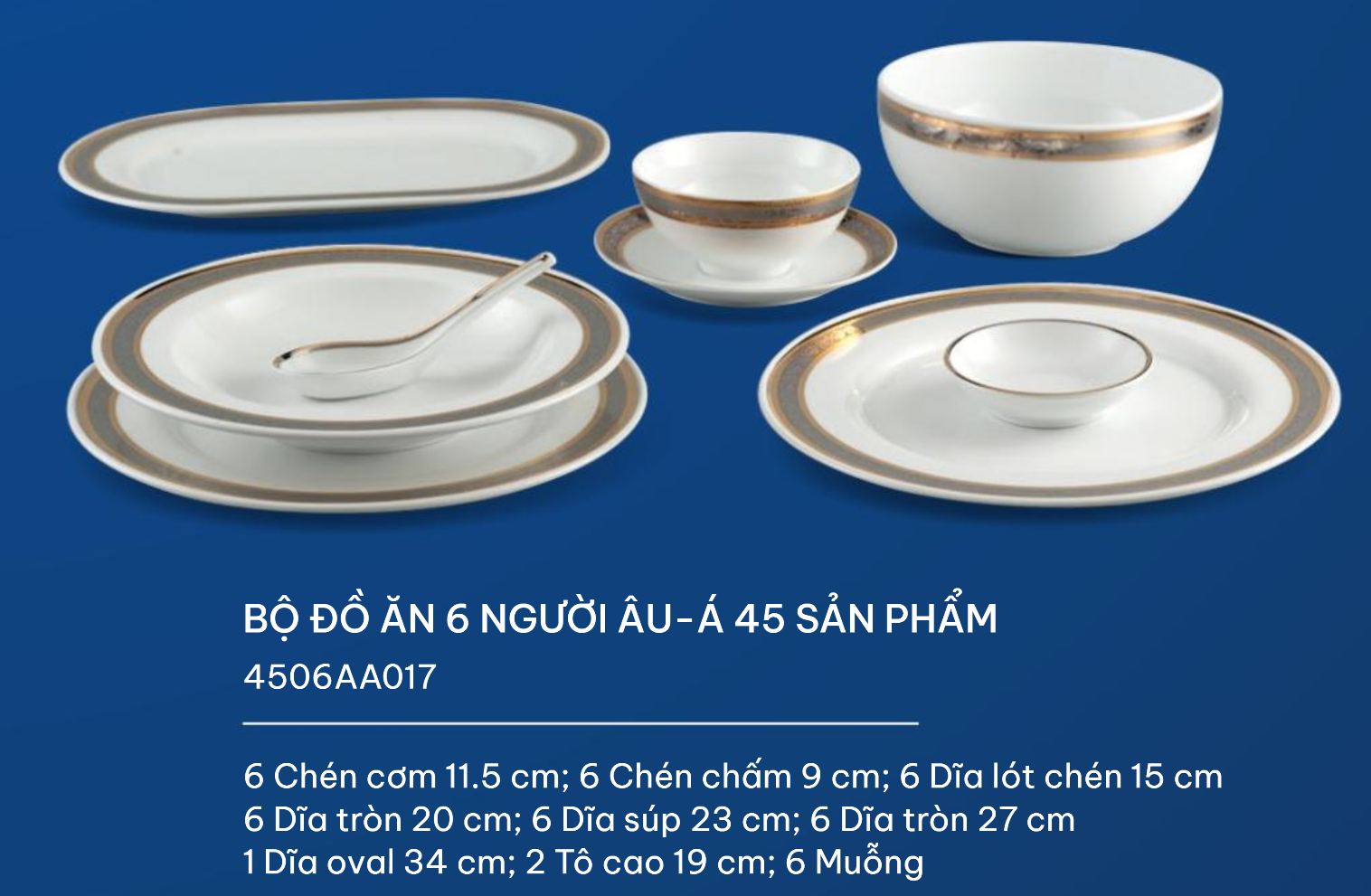 Bộ đồ ăn 45 sản phẩm bao gồm: