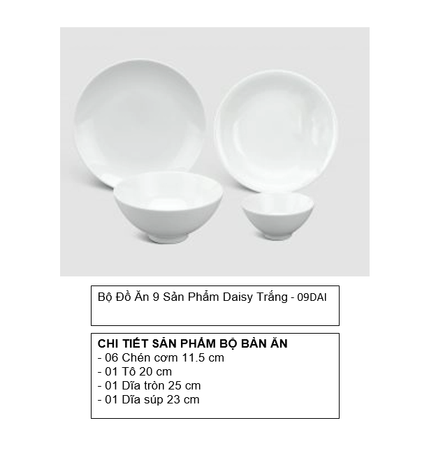 Bộ đồ ăn 09 sản phẩm bao gồm: