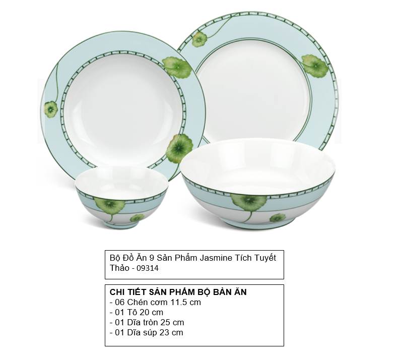 Bộ đồ ăn 09 sản phẩm bao gồm: