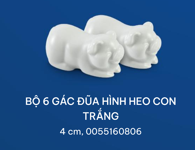 Bộ 6 Gác đũa hình Heo con 4 cm - Jasmine - Trắng