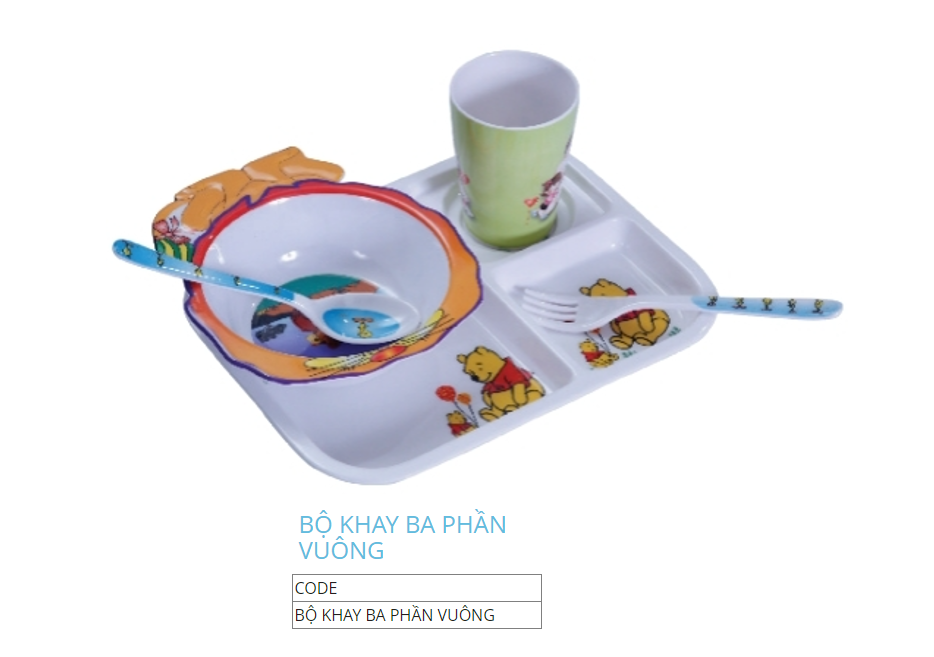 BỘ KHAY 3 PHẦN VUÔNG Fataco - Trẻ Em Gấu Pooh Nhựa FA BK3FV GP