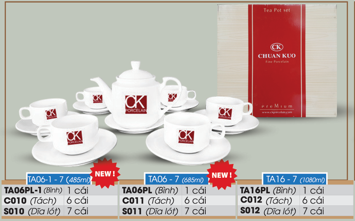 Bộ Sản Phẩm Gồm 14 Món - 1 Bình Trà TA06PL-1: 485ml - 6 Tách C010: 120ml - 7 Dĩa Lót S010: 12cm |