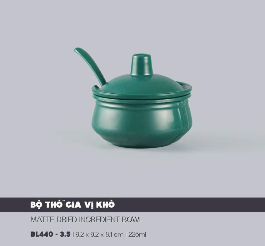 Bộ Thố Gia Vị Khô Có Nắp Và Muỗng Nhám 3.5 J&K Nhám Jade Dark Green (Xanh Bích) Ø: 9.2cm 225ml Cao: 8.1cm Superware Nhựa BL440-3.5 JDG