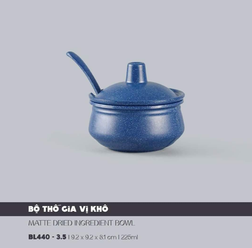 Bộ Thố Gia Vị Khô Có Nắp Và Muỗng Nhám 3.5 J&K Nhám Navy Stone (Xanh Biển Navy) Ø: 9.2cm 225ml Cao: 8.1cm Superware Nhựa BL440-3.5 NS