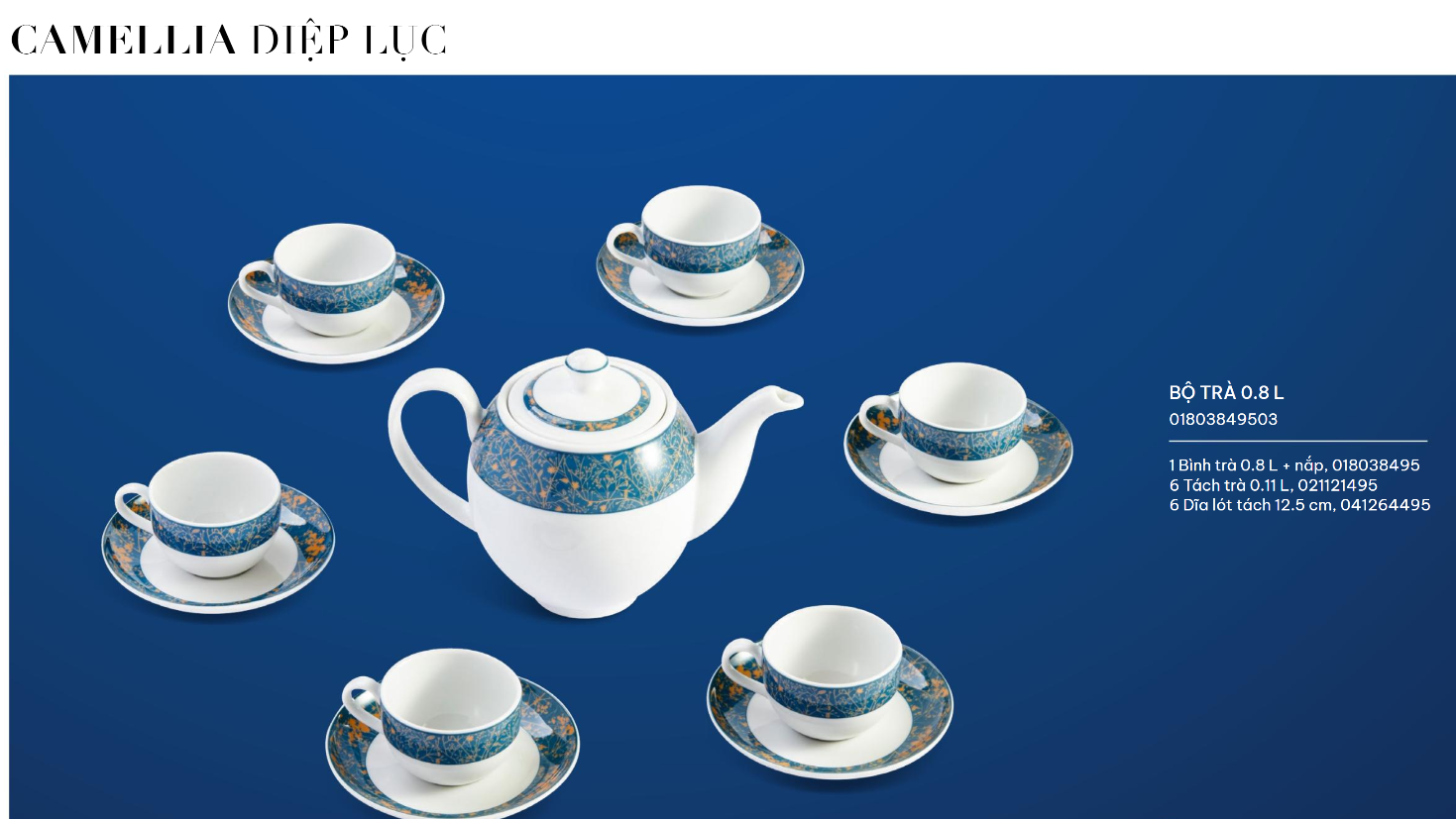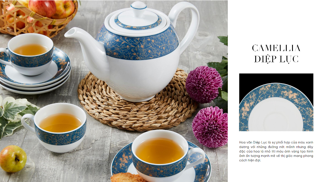 Hoa văn Diệp Lục là sự phối hợp của màu xanh dương với những đường nét mảnh nhưng dày đặc của hoa lá nhỏ li ti màu ánh vàng tạo hình ảnh ấn tượng mạnh mẽ về thị giác mang phong cách hiện đại.