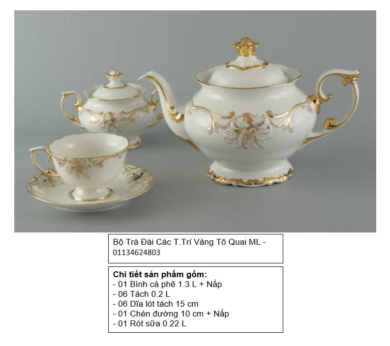Bộ sản phẩm Đài các toát lên vẻ đẹp kiêu sa, lộng lẫy theo phong cách quyền quý hoàng gia. Bộ sản phẩm có kiểu dáng sang trọng, nhiều đường nét được cách điệu, uốn lượn với dáng điệu mềm mại, mảnh mai.