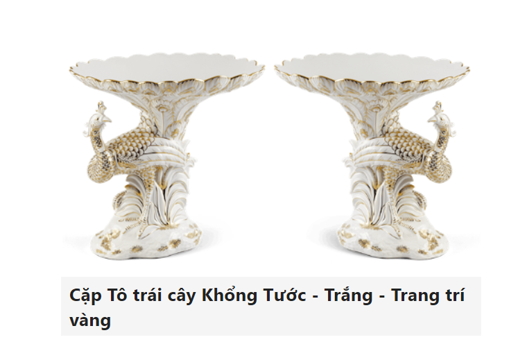 Mỗi chi tiết của Khổng tước đều được chế tác công phu, chính xác tuyệt đối và được điểm xuyến vàng 24k lấp lánh tạo nên tô trái cây vừa vững vàng vừa uyển chuyển, duyên dáng. Kết hợp hoàn hảo về kỹ thuật và mỹ thuật, tô trái cây Khổng tước mang một năng lượng to lớn, đơm hoa kết trái cho những loại trái cây tươi khi dâng lên bàn thờ, thể hiện lòng thành kính của con cháu.