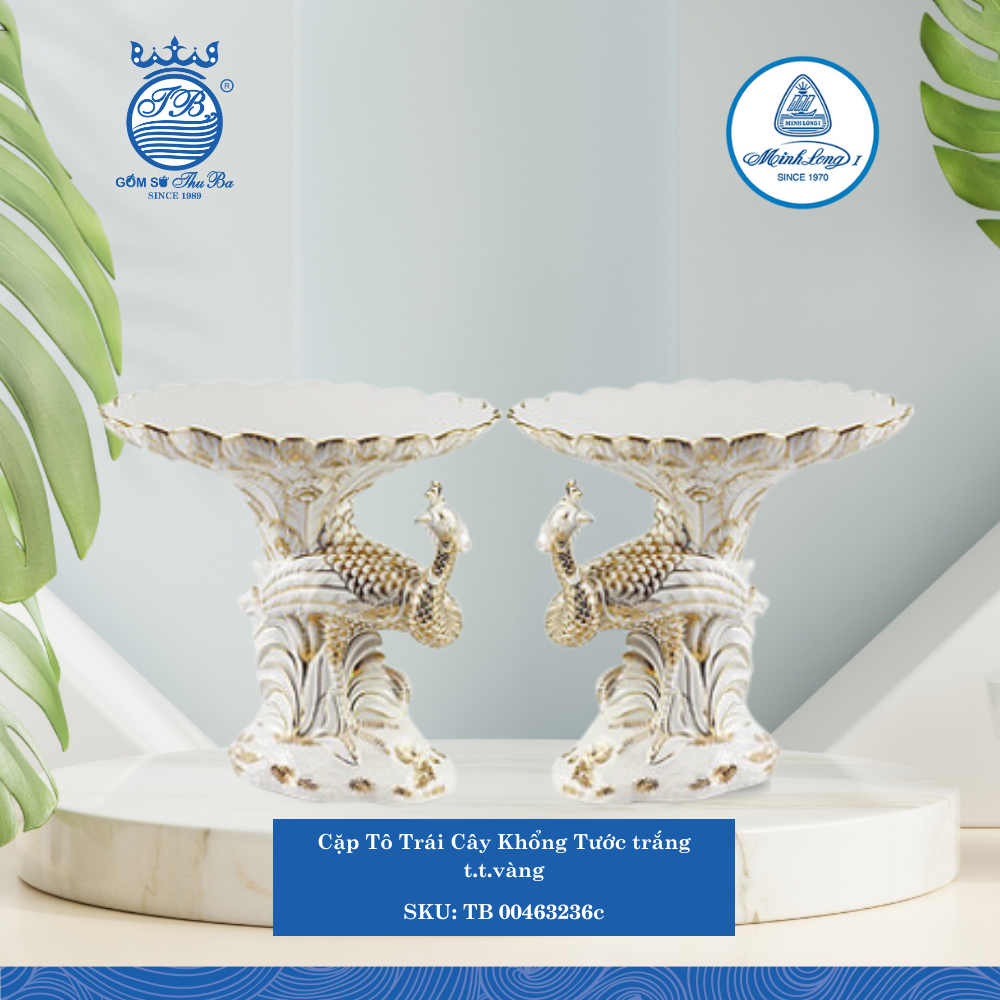 Tô trái cây Khổng tước khoác lên mình bộ đôi sắc màu là trắng trẻ trung và xanh cobalt quý phái, sang trọng đáp ứng đa dạng sở thích của chủ sở hữu mà vẫn vẹn tròn lộc đầu xuân.