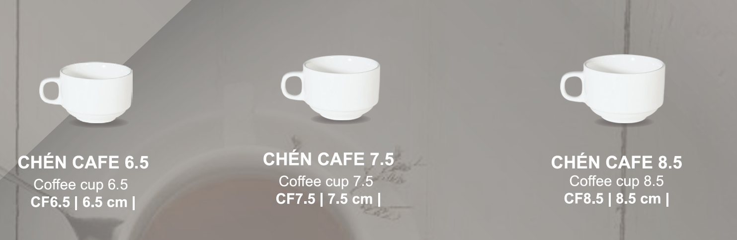 Đặc điểm của chén cà phê Chén cà phê không quá lớn, vừa để bạn có thể thưởng thức một tách cà phê ngon lành Màu sắc trắng sáng, nhã nhặn, sáng bóng khi rửa không bị bám cặn cà phê