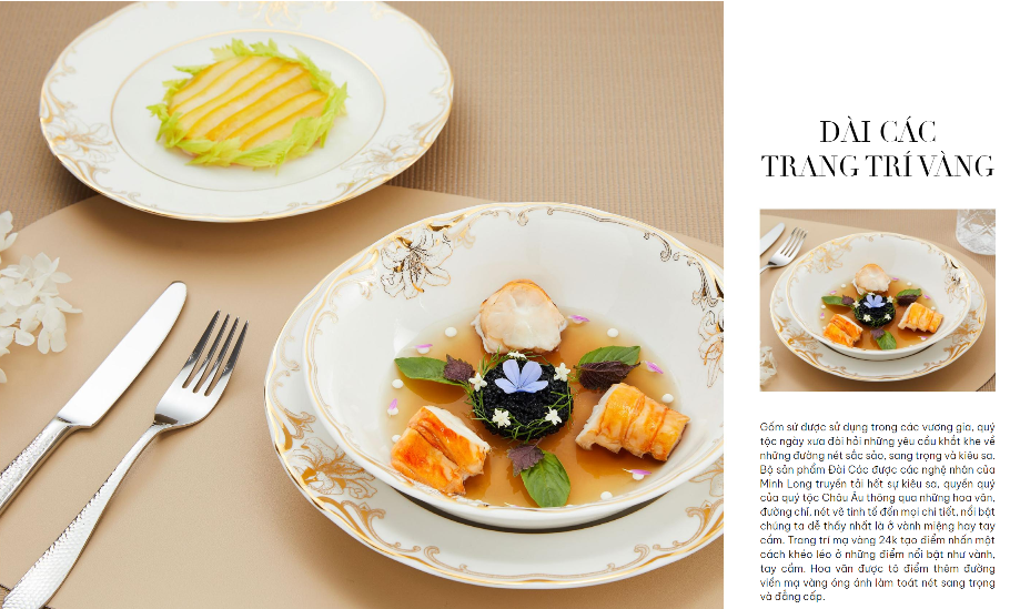 Hoa văn được nhấn nhá bằng những đường viền óng ánh vô cùng đẹp mắt, , càng tôn lên vẻ đẹp đẳng cấp của không gian ẩm thực cũng như phong cách thẩm mỹ của chủ sở hữu.