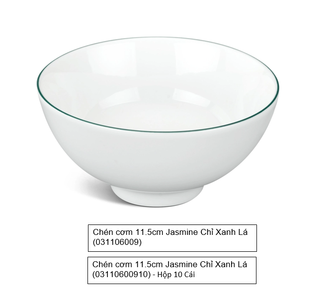 Sự phối kết giữa men sứ trắng và đường chỉ xanh lá chưa bao giờ lỗi mốt và đã tạo cho Jasmine Chỉ xanh lá điểm nhấn đặc biệt bởi nét mềm mại, thanh thoát mà sang trọng, tô điểm không gian ẩm thực thêm phần tươi mát và mới mẻ. Sản phẩm được nung ở nhiệt độ cao, không chứa chì, không cadmium, phù hợp sử dụng trong gia đình hoặc làm quà tặng cho người thân, bạn bè...