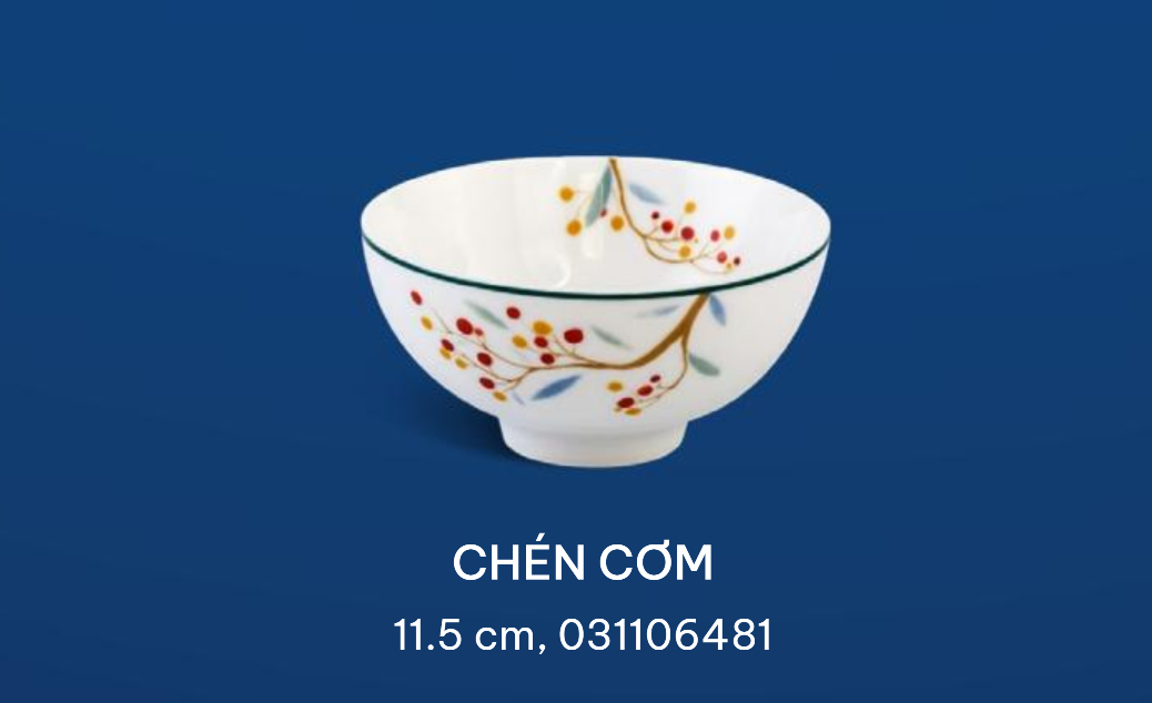 Điểm nhấn của bộ sản phẩm là những chùm quả chín căng mọng, ngọt ngào biểu tượng cho sự thịnh vượng, đơm hoa kết trái. Hình ảnh chú chim đậu trên cành được khắc họa khéo léo trên sứ trắng càng tăng thêm sự sống động, chân thực cho bức tranh thiên nhiên vào mùa quả chín.