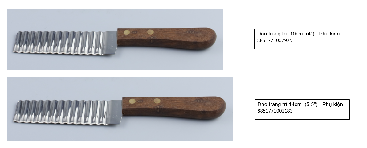 –Dao trang trí được dùng để cắt các loại bánh như bánh da lợn, rau câu, bánh dẻo hay cắt những loại rau củ như cà rốt, su hào, cải trắng,… được sử dụng phổ biến rộng rãi trong gia đình và các nhà hàng, được mọi người tin dùng.