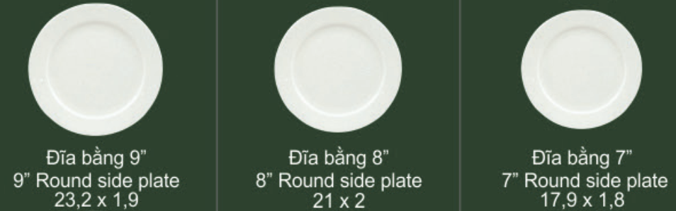- + Size 9 inch: Chiều rộng 23.2cm, cao 1.9cm