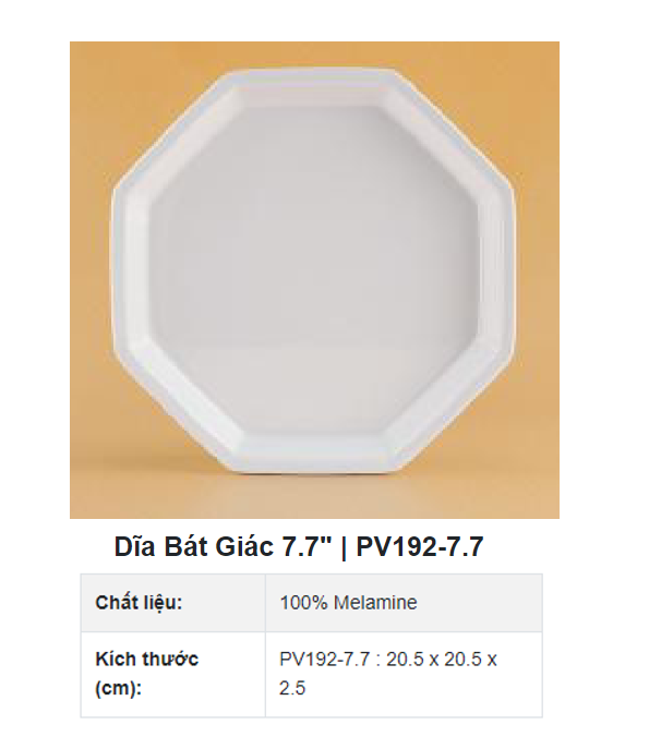 Dĩa bát giác 7.7" | PV192-7.7 thuộc dòng sản phẩm J&K