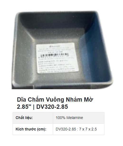 Sản phẩm có bề mặt nhám, hạn chế trầy xước. Dùng để đựng nước chấm các loại.