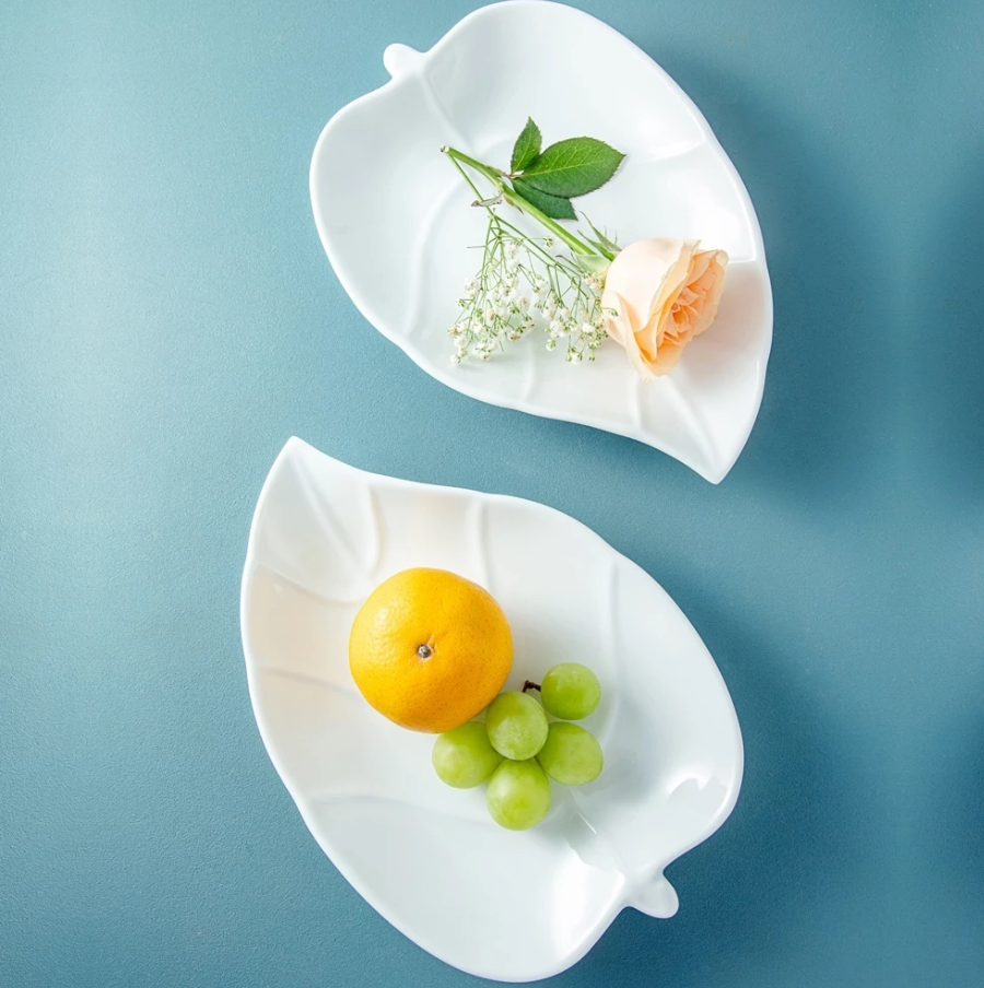Đĩa hình lá có hình dáng của chiếc lá, mang lại sự hiện đại trong mỗi bữa ăn. Với lớp men nền màu trắng ngà, trong suốt, bóng, đẹp và độ thấu quang cao bởi Ohio tập trung vào dòng sản phẩm từ sứ và trong quá trình xử lý, tạp chất gần như được loại bỏ hoàn toàn.