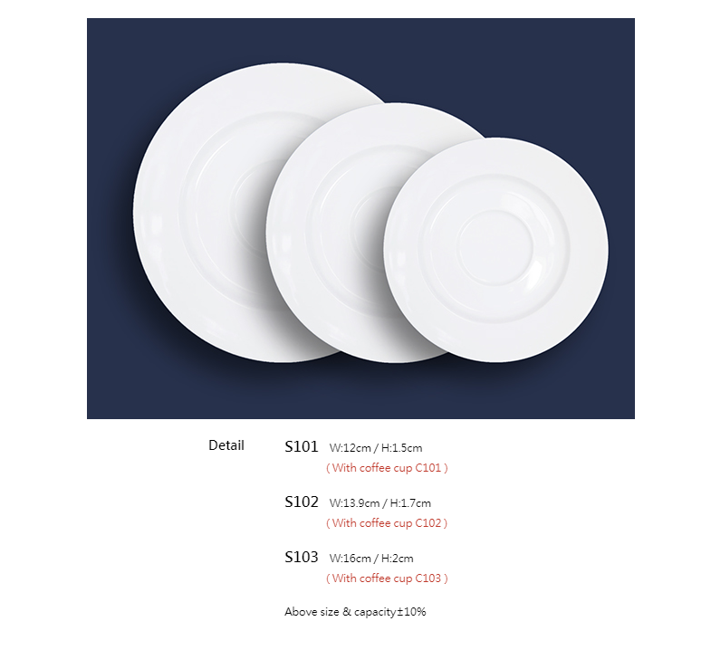 - Ø: 12cm - Cao: 1.5cm - Dĩa lót tách S101 có thể dùng với tách