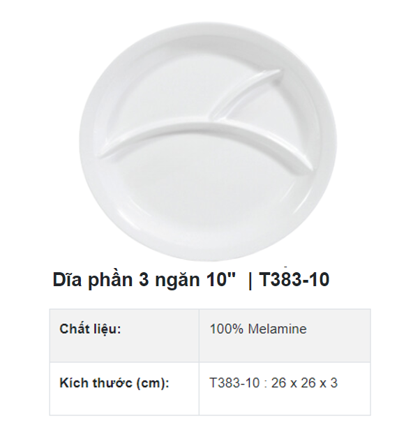 Dĩa phần 3 ngăn 10" | T383-10 thuộc dòng sản phẩm trẻ em.