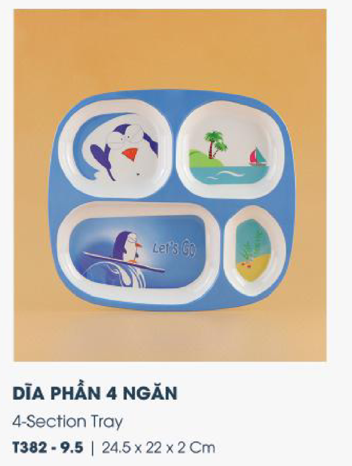 Dĩa phần 4 ngăn 9.5" Penguin Let's go | T382-9.5 thuộc dòng sản phẩm trẻ em.